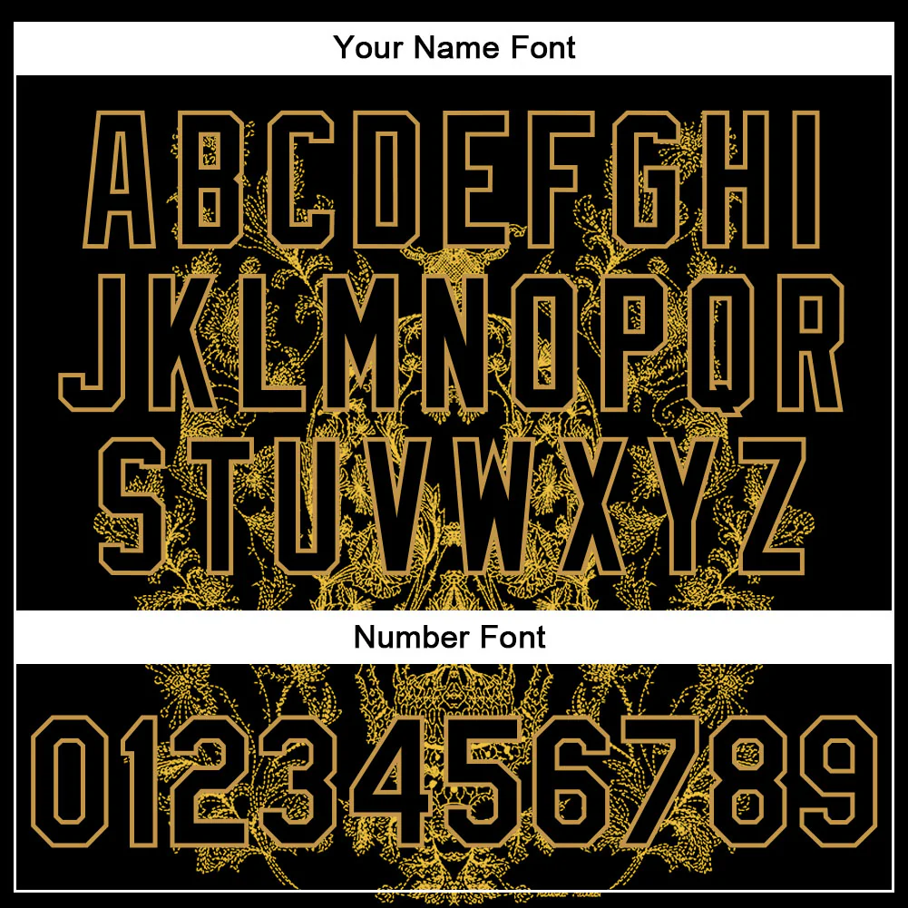 Custom Black Old Gold Skull Fashion 3D Bomber Full-Snap Varsity Letterman Jacket