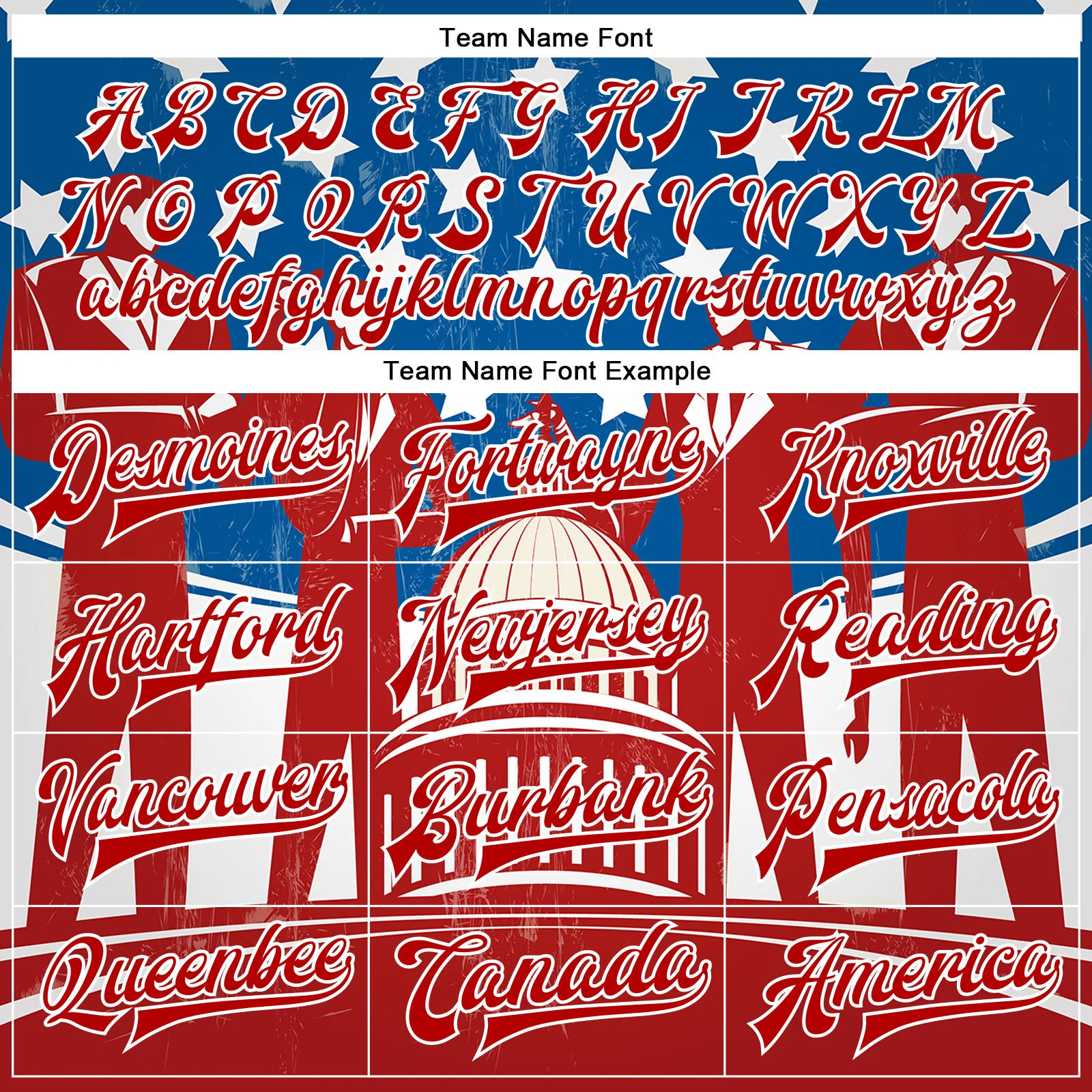 Custom Red US Navy Blue-Royal American Flag Fashion United States Congress Building 3D Pattern Design Bomber Full-Snap Varsity Letterman Jacket