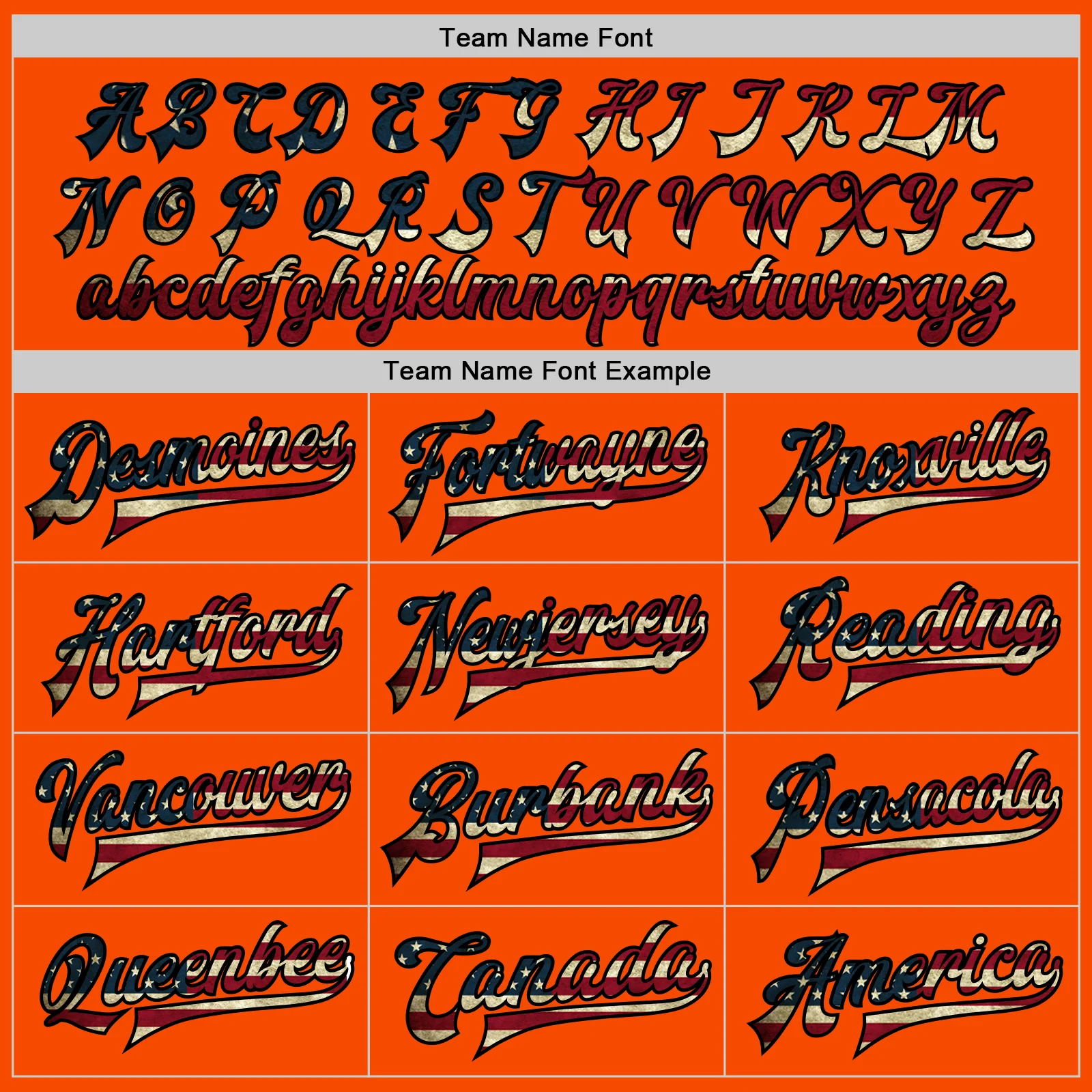 Custom Orange Vintage USA Flag Black-Cream Bomber Full-Snap Varsity Letterman Jacket