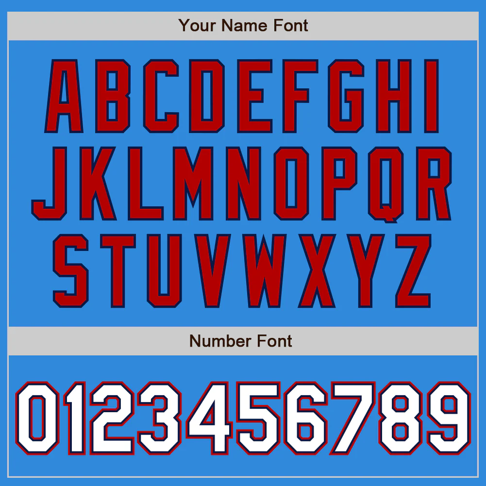Custom Powder Blue White Navy-Red Bomber Full-Snap Varsity Letterman Jacket