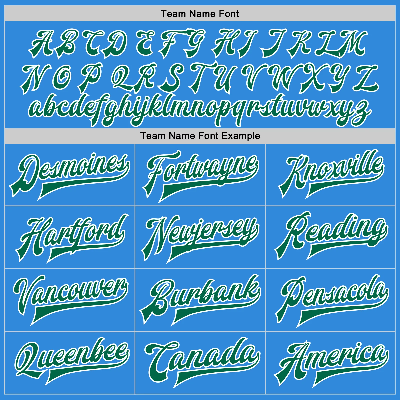 Custom Powder Blue Kelly Green-White Bomber Full-Snap Varsity Letterman Jacket