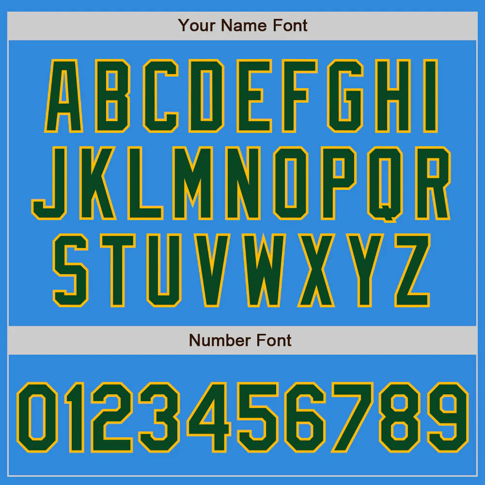 Custom Powder Blue Green-Gold Bomber Full-Snap Varsity Letterman Jacket