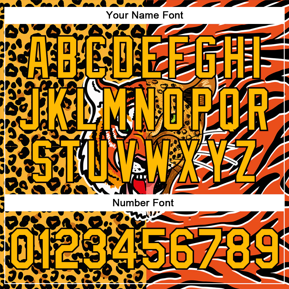 Custom Orange Gold-Black Tiger And Leopard Print 3D Pattern Design Bomber Full-Snap Varsity Letterman Jacket
