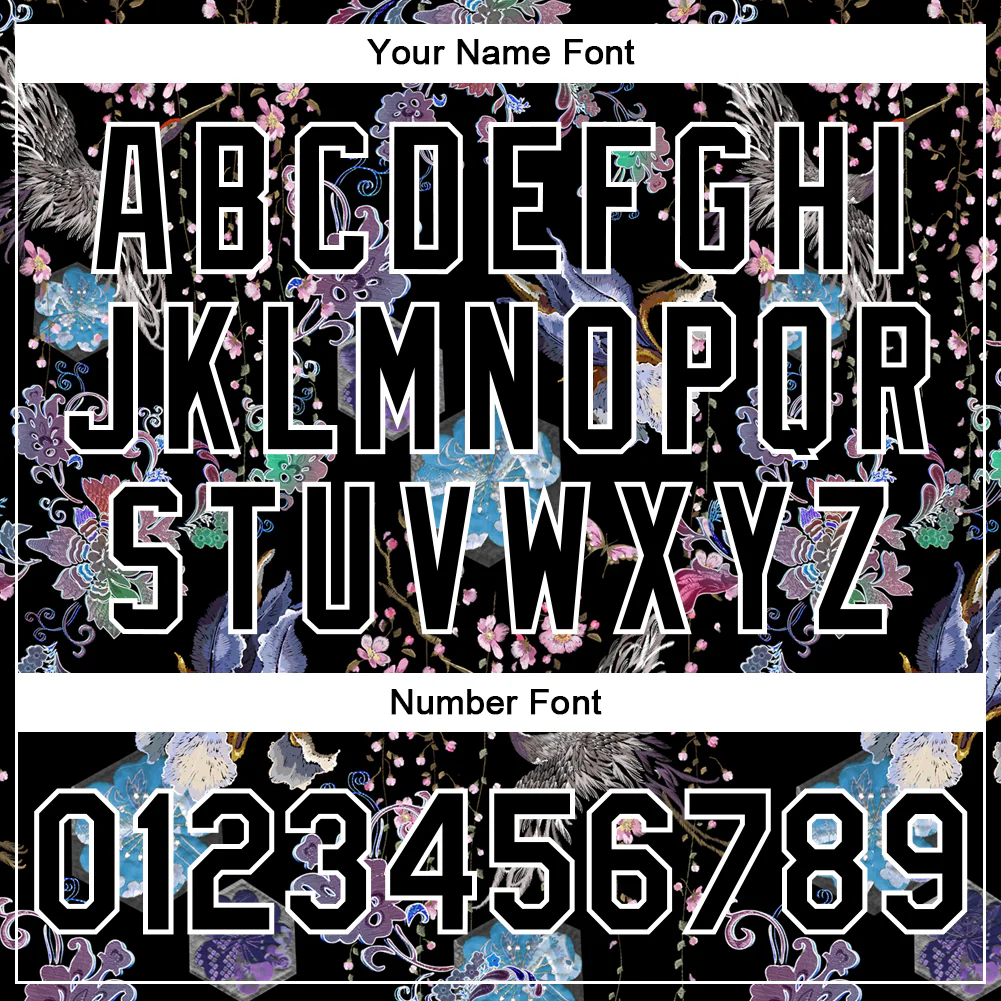 Custom Black White Heron And Flower 3D Pattern Design Bomber Full-Snap Varsity Letterman Jacket