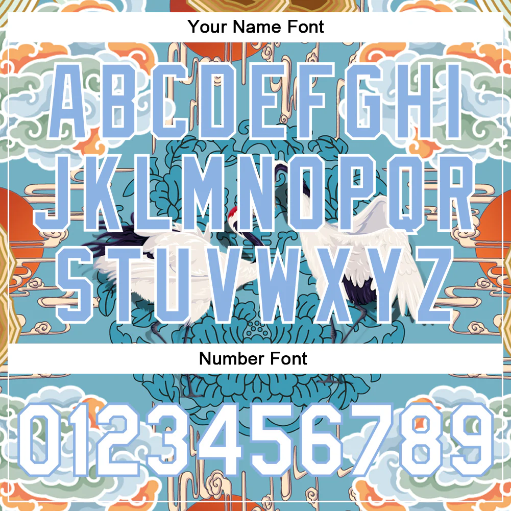 Custom Light Blue White Heron And Cloud 3D Pattern Design Bomber Full-Snap Varsity Letterman Jacket