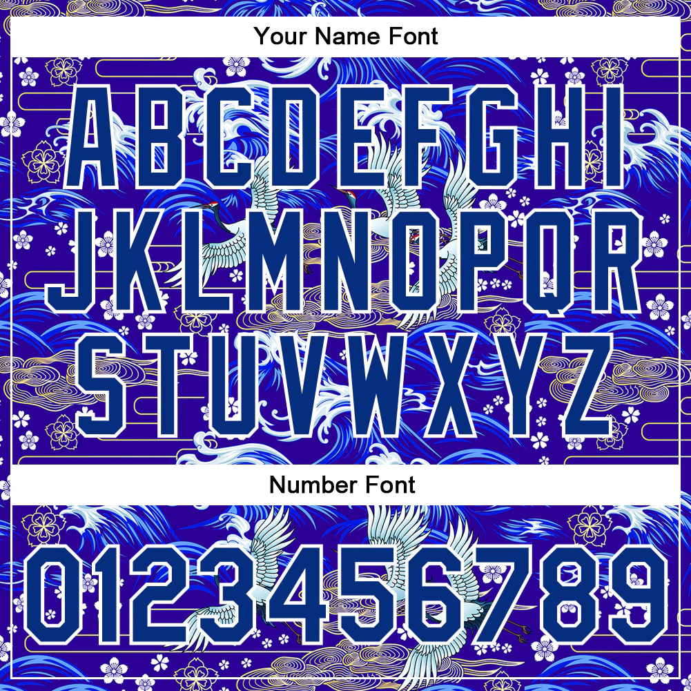 Custom Black Royal-White Heron And Wave 3D Pattern Design Bomber Full-Snap Varsity Letterman Jacket