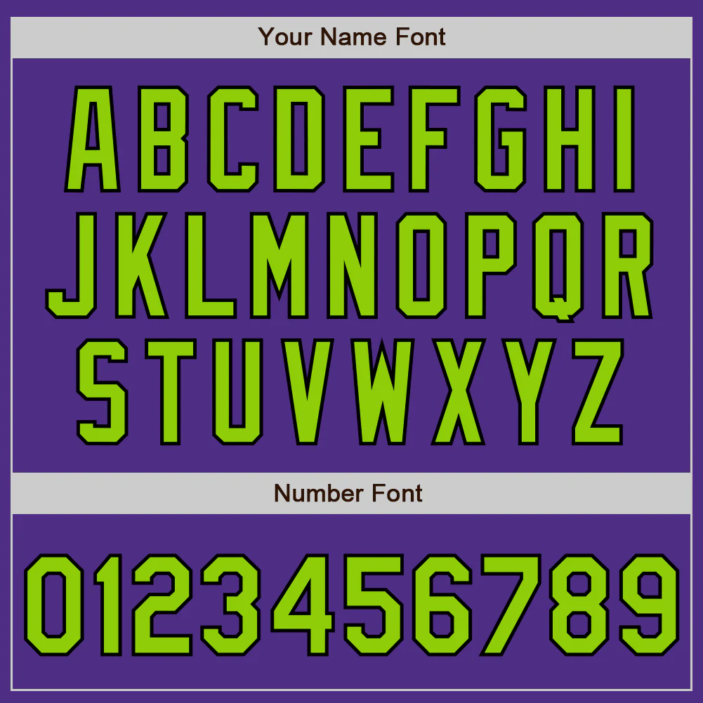 Custom Purple Neon Green-Black Bomber Full-Snap Varsity Letterman Jacket