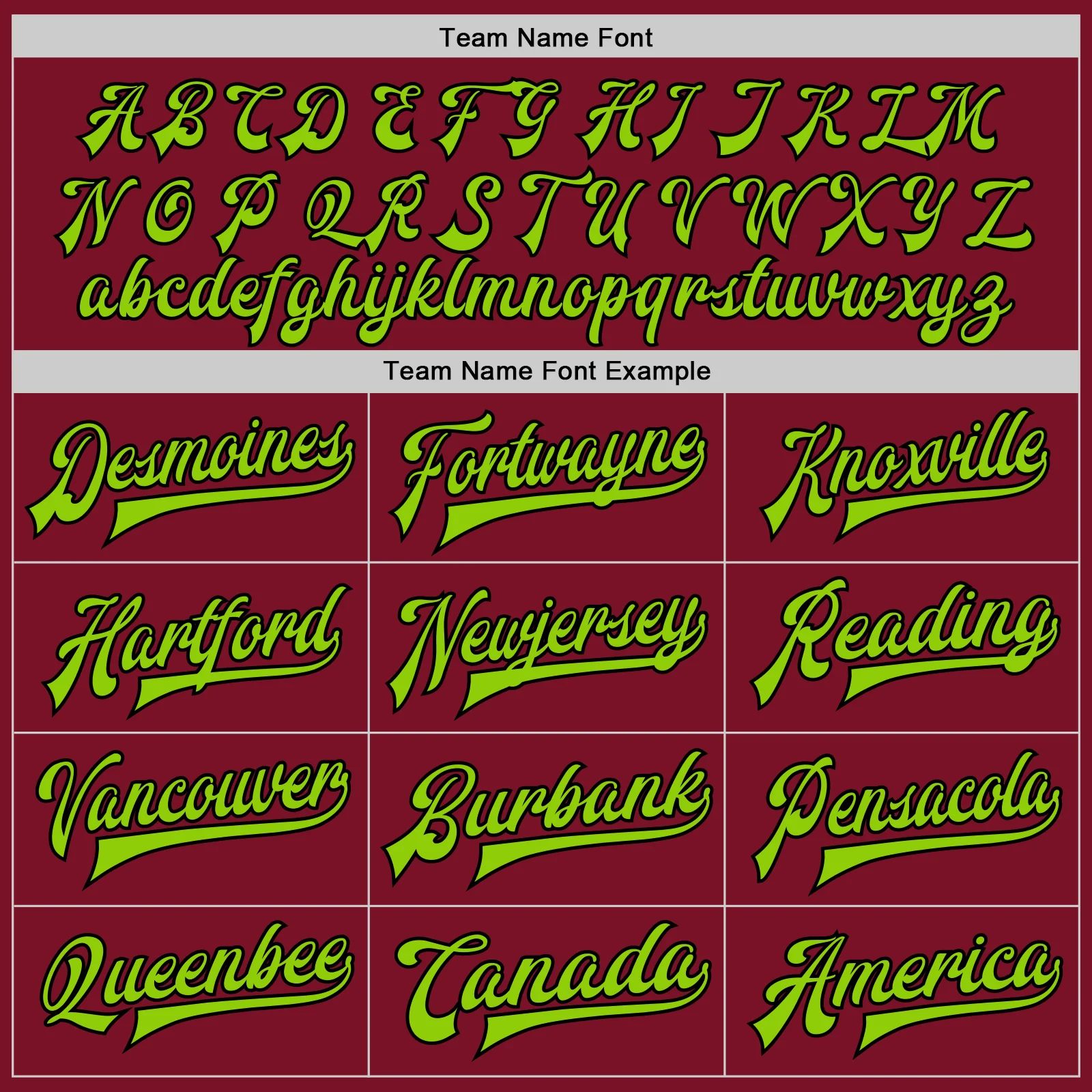 Custom Crimson Neon Green-Black Bomber Full-Snap Varsity Letterman Jacket