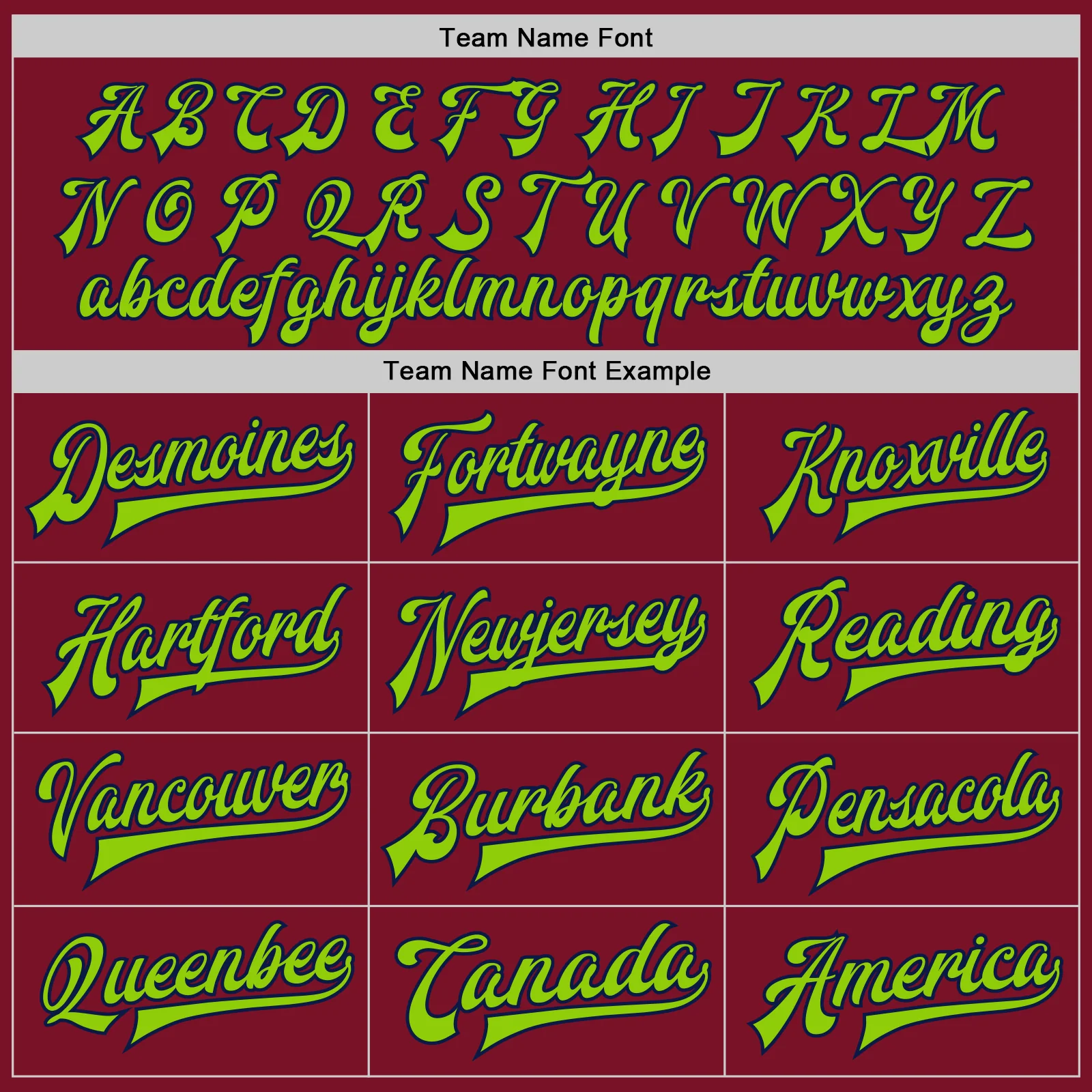 Custom Crimson Neon Green-Navy Bomber Full-Snap Varsity Letterman Jacket