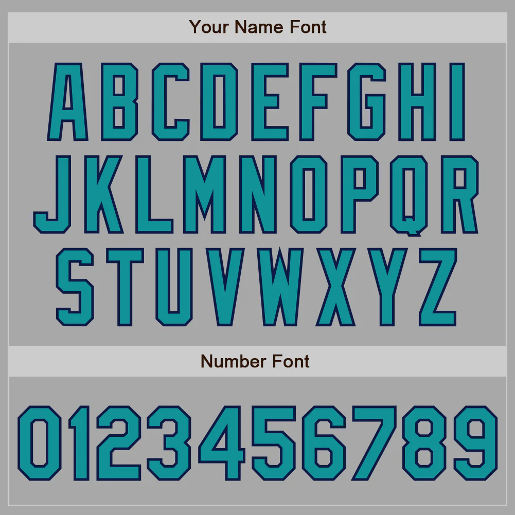 Custom Gray Teal-Navy Bomber Full-Snap Varsity Letterman Jacket