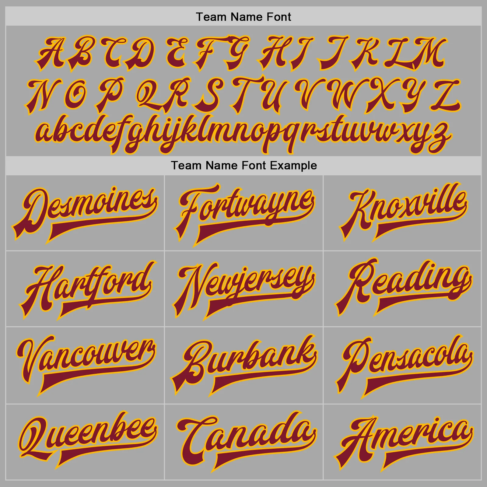 Custom Gray Crimson-Gold Bomber Full-Snap Varsity Letterman Jacket