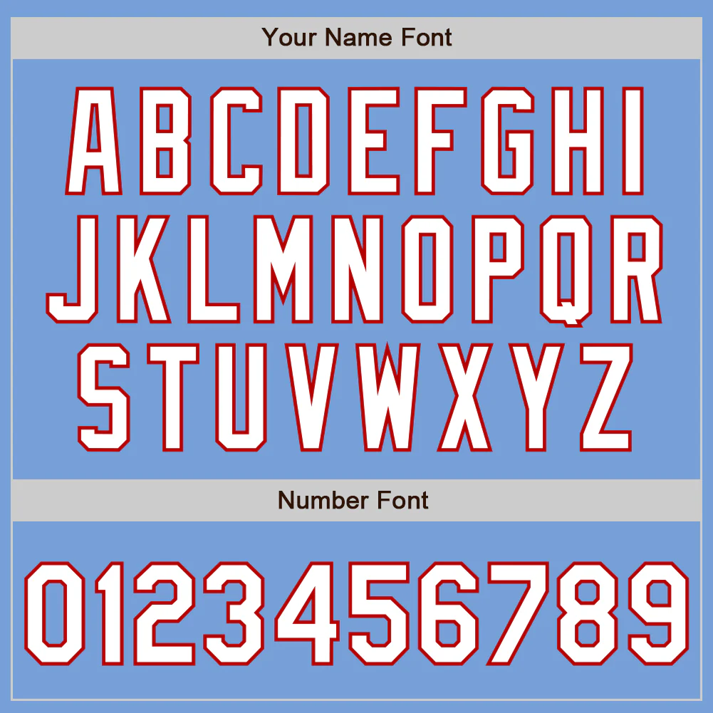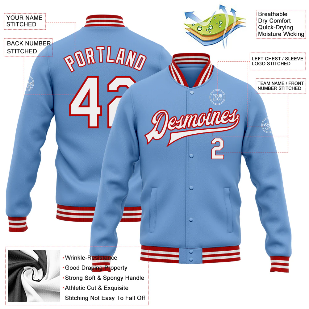 Custom Light Blue White-Red Bomber Full-Snap Varsity Letterman Jacket