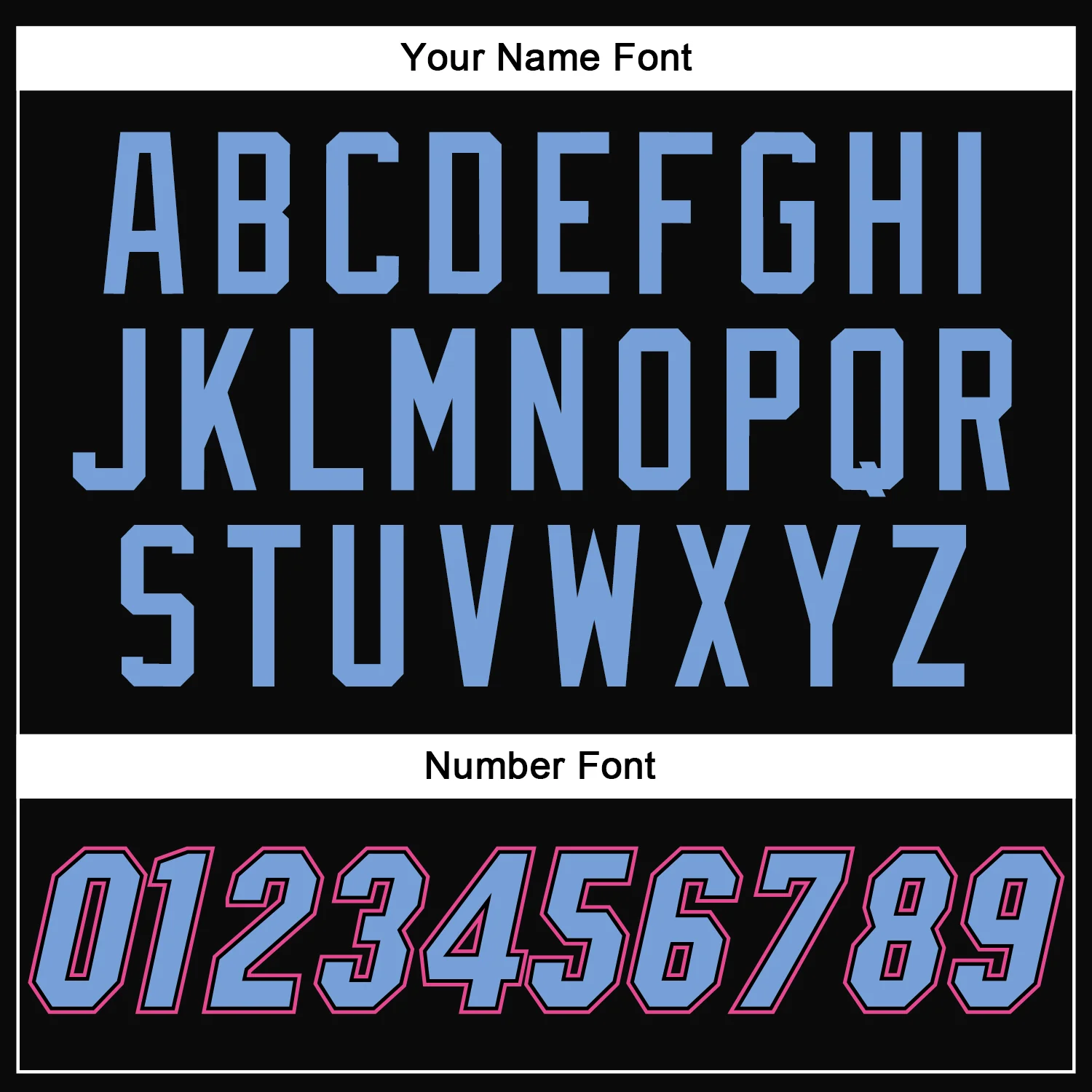 Custom Black Light Blue-Pink Bomber Full-Snap Varsity Letterman Split Fashion Jacket