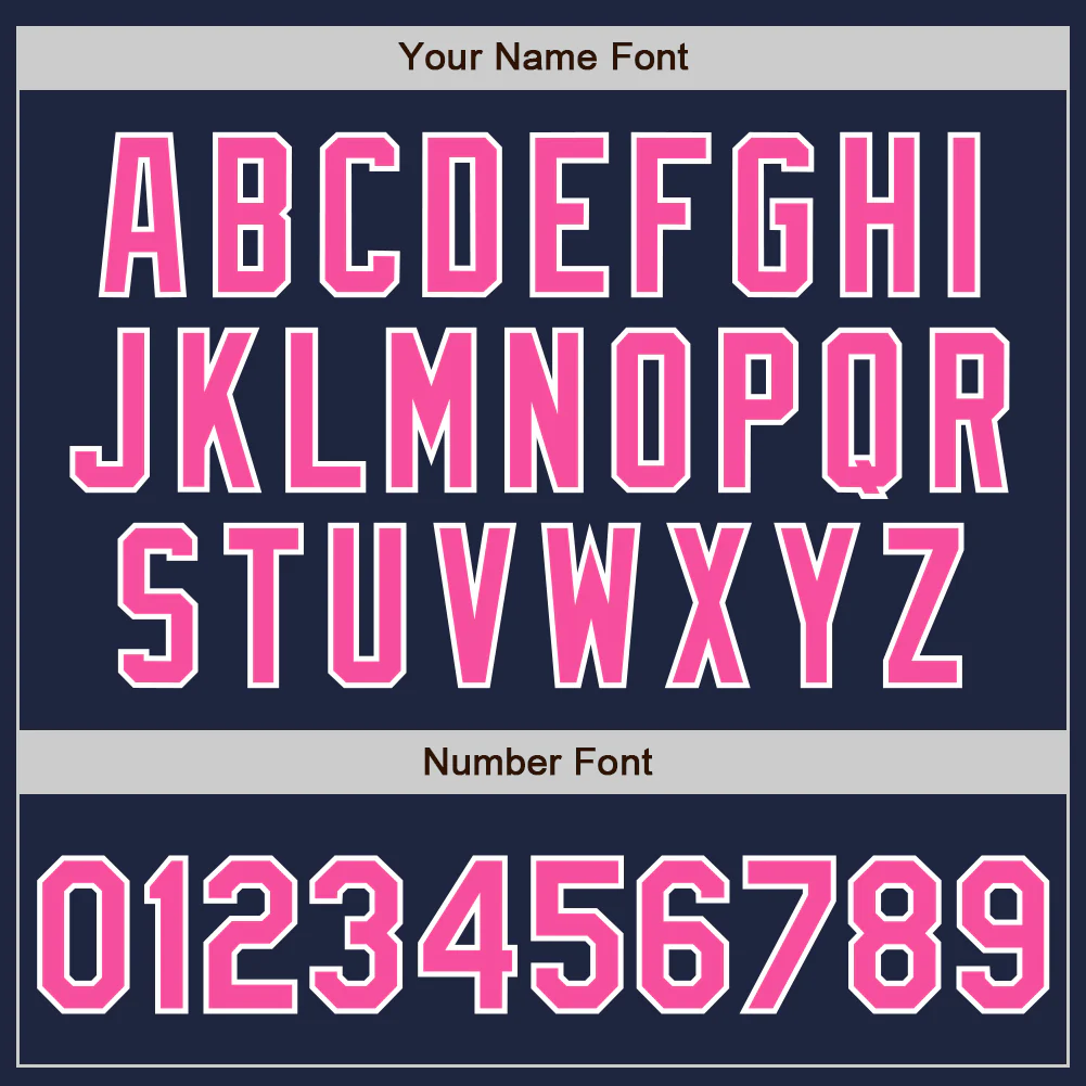 Custom Navy Pink-White Bomber Full-Snap Varsity Letterman Two Tone Jacket