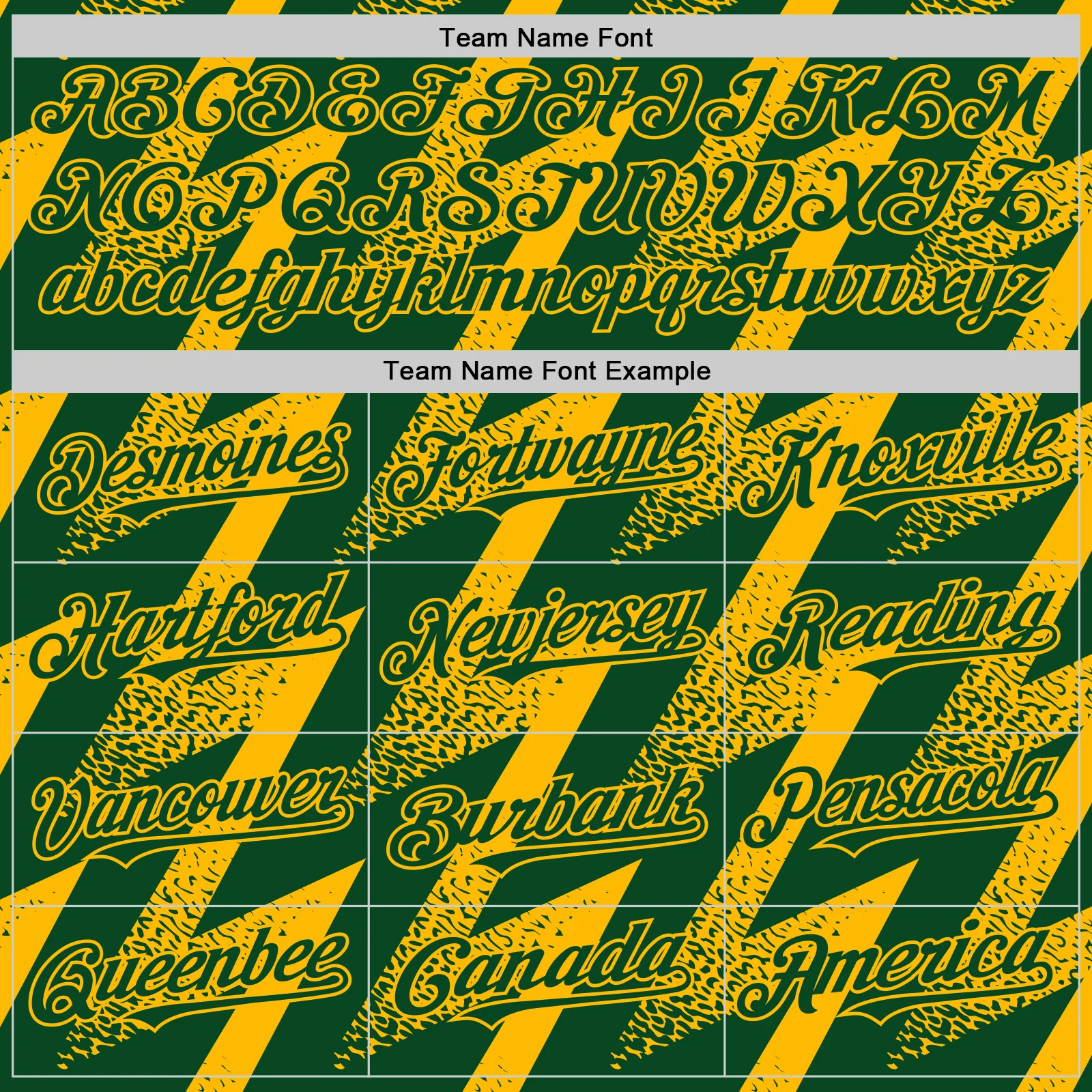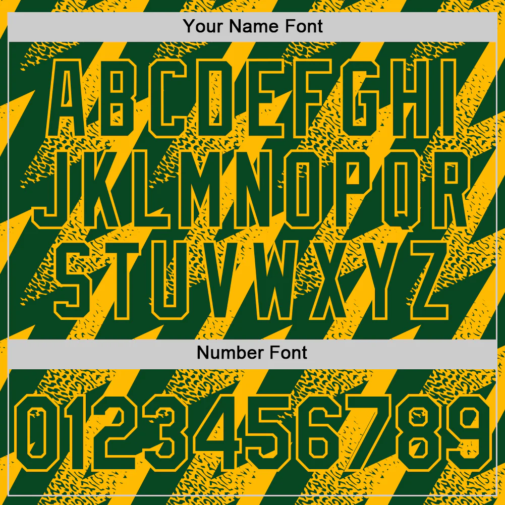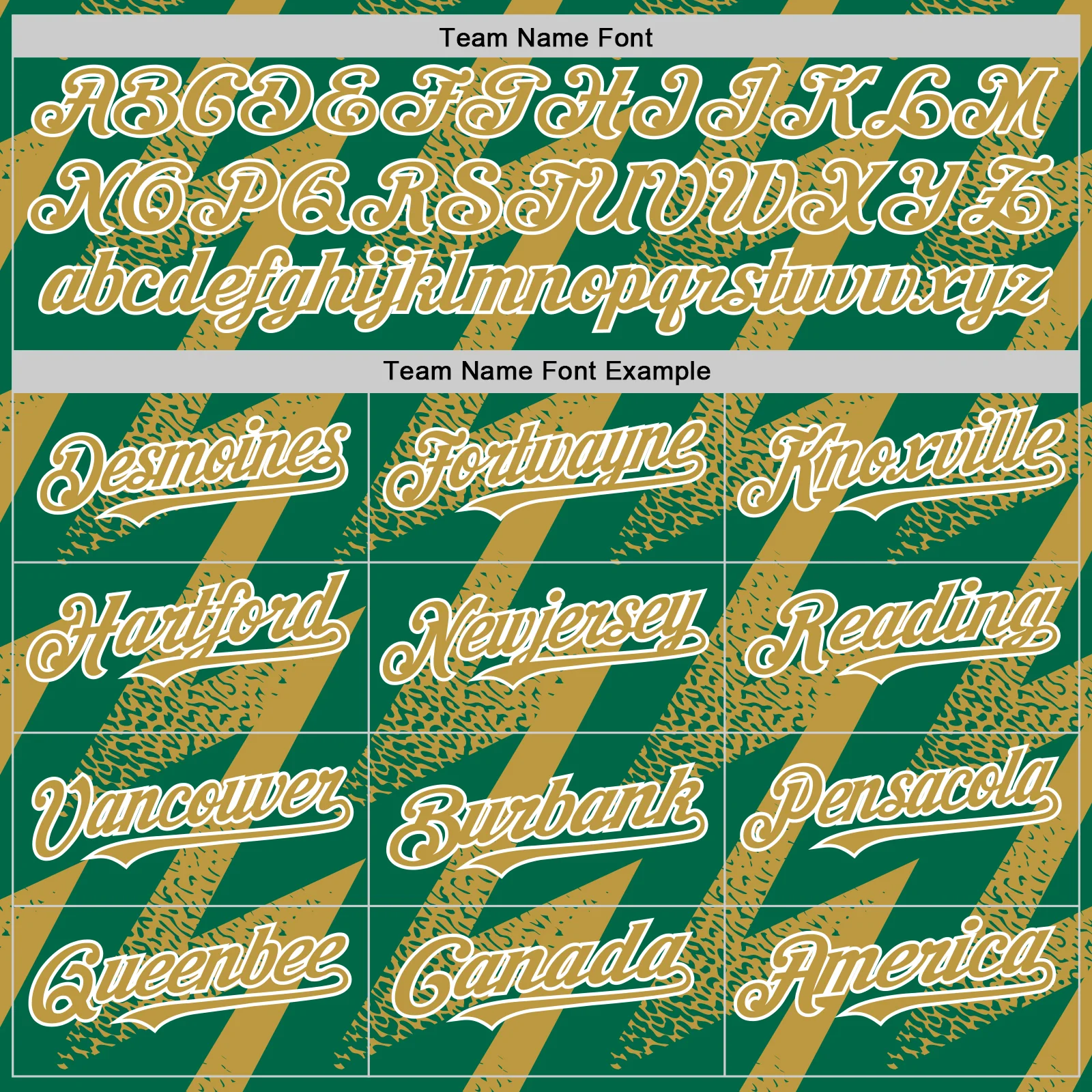 Custom Kelly Green Old Gold-White Zigzag Shape 3D Pattern Design Bomber Full-Snap Varsity Letterman Hoodie Jacket