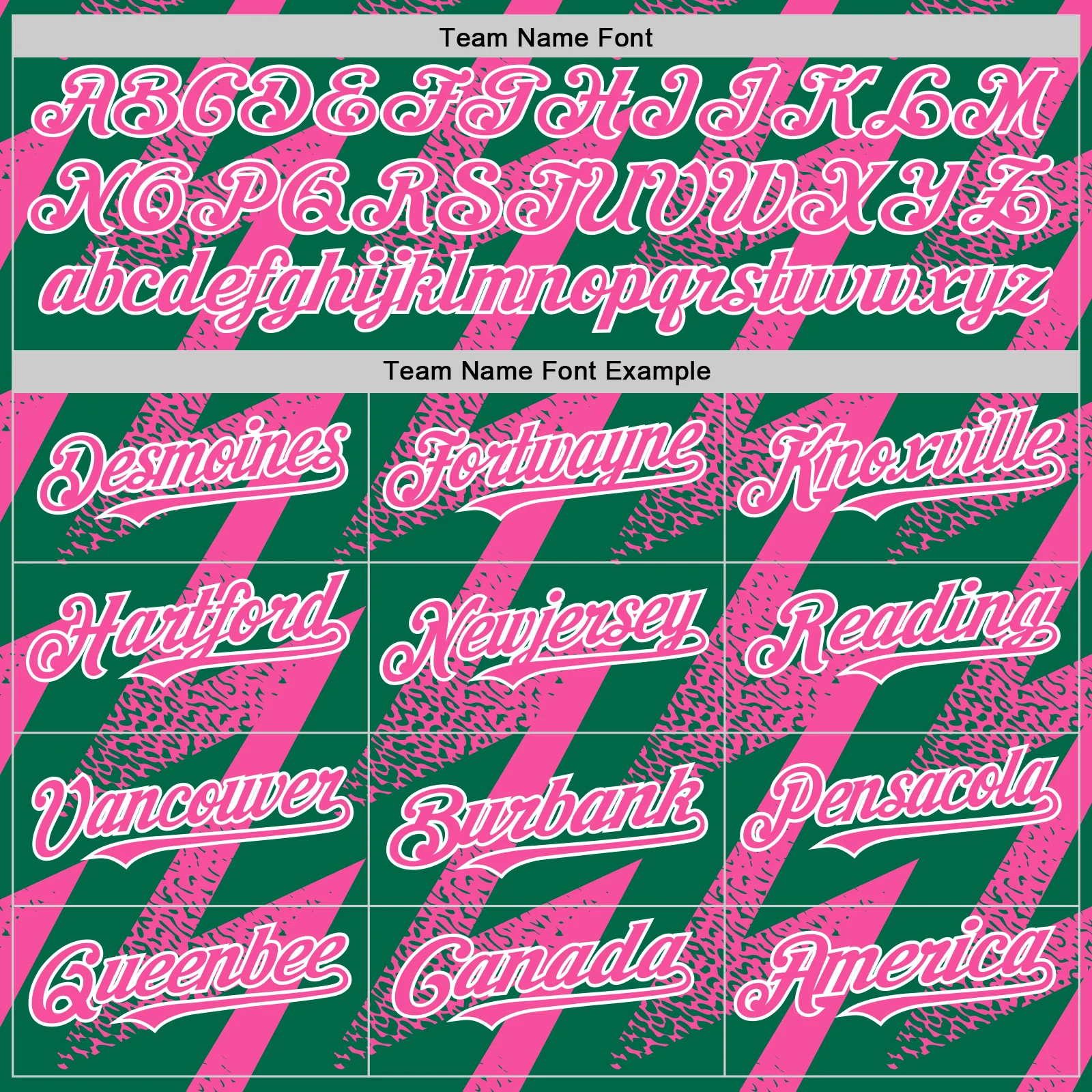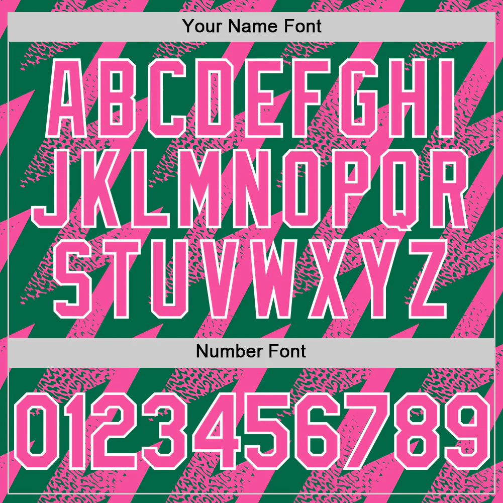 Custom Kelly Green Pink-White Zigzag Shape 3D Pattern Design Bomber Full-Snap Varsity Letterman Hoodie Jacket