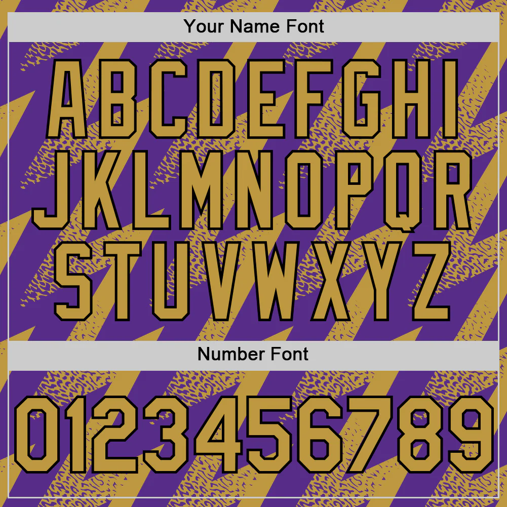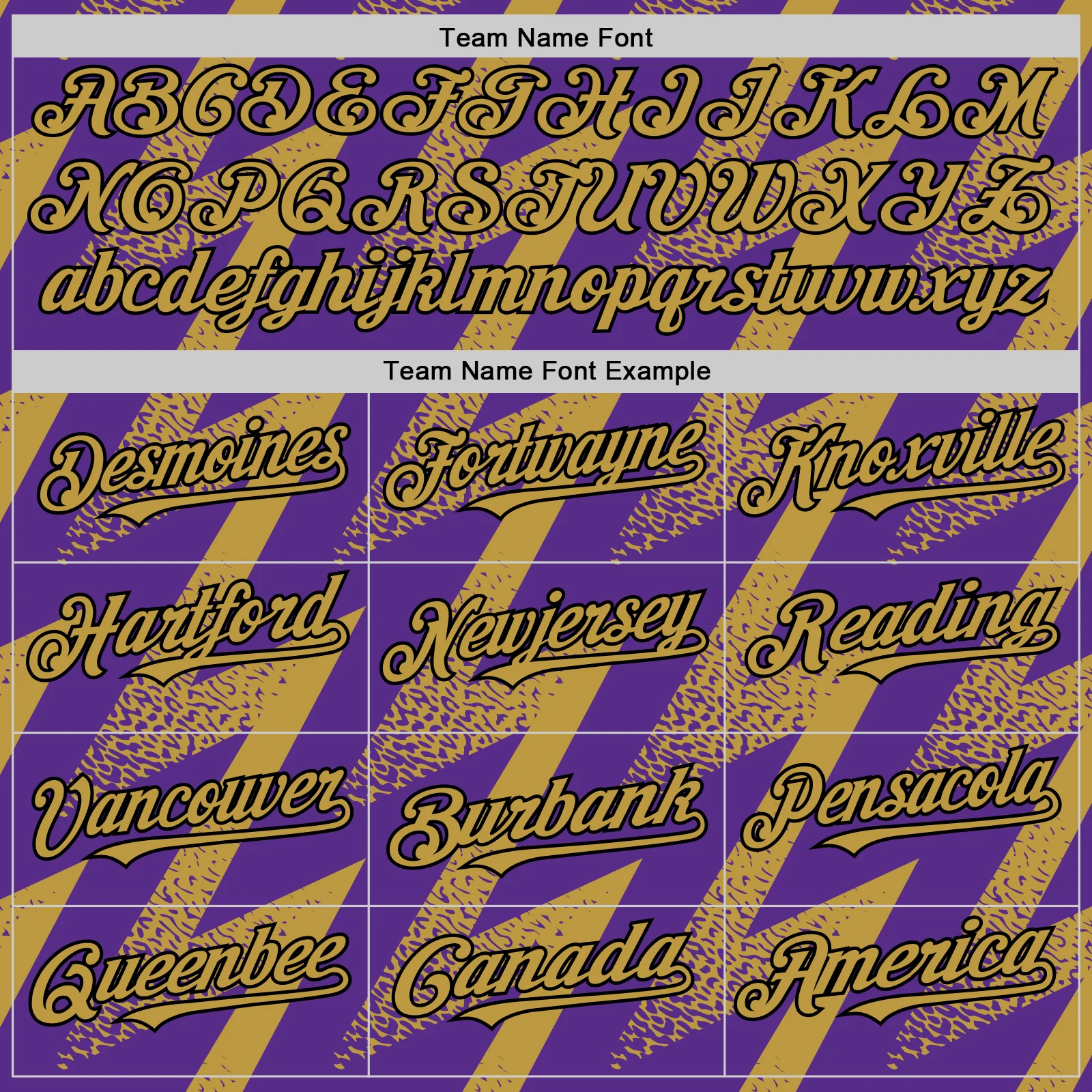 Custom Purple Old Gold Black-White Zigzag Shape 3D Pattern Design Bomber Full-Snap Varsity Letterman Hoodie Jacket