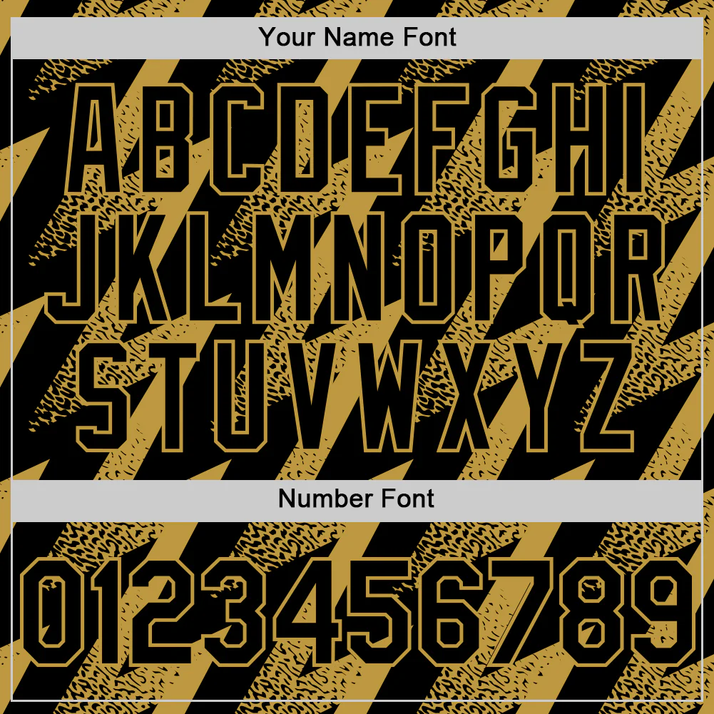 Custom Black Old Gold Zigzag Shape 3D Pattern Design Bomber Full-Snap Varsity Letterman Hoodie Jacket