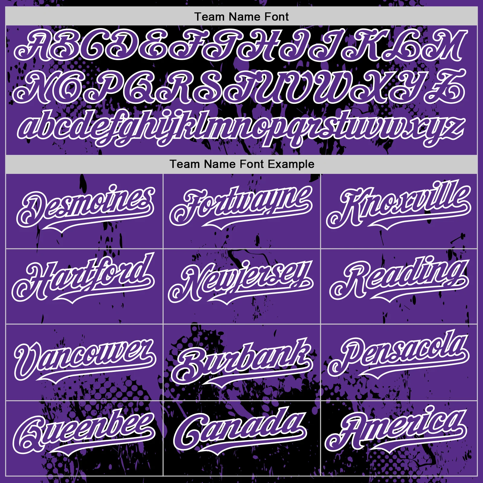 Custom Black Purple-White Splash Art 3D Pattern Design Bomber Full-Snap Varsity Letterman Hoodie Jacket