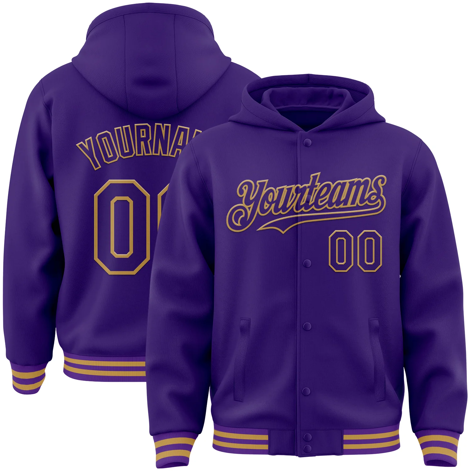 Custom Purple Old Gold Bomber Full-Snap Varsity Letterman Hoodie Jacket