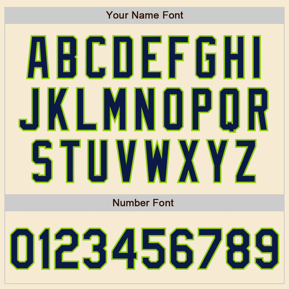 Custom Cream Navy-Neon Green Bomber Varsity Letterman Zipper Jacket