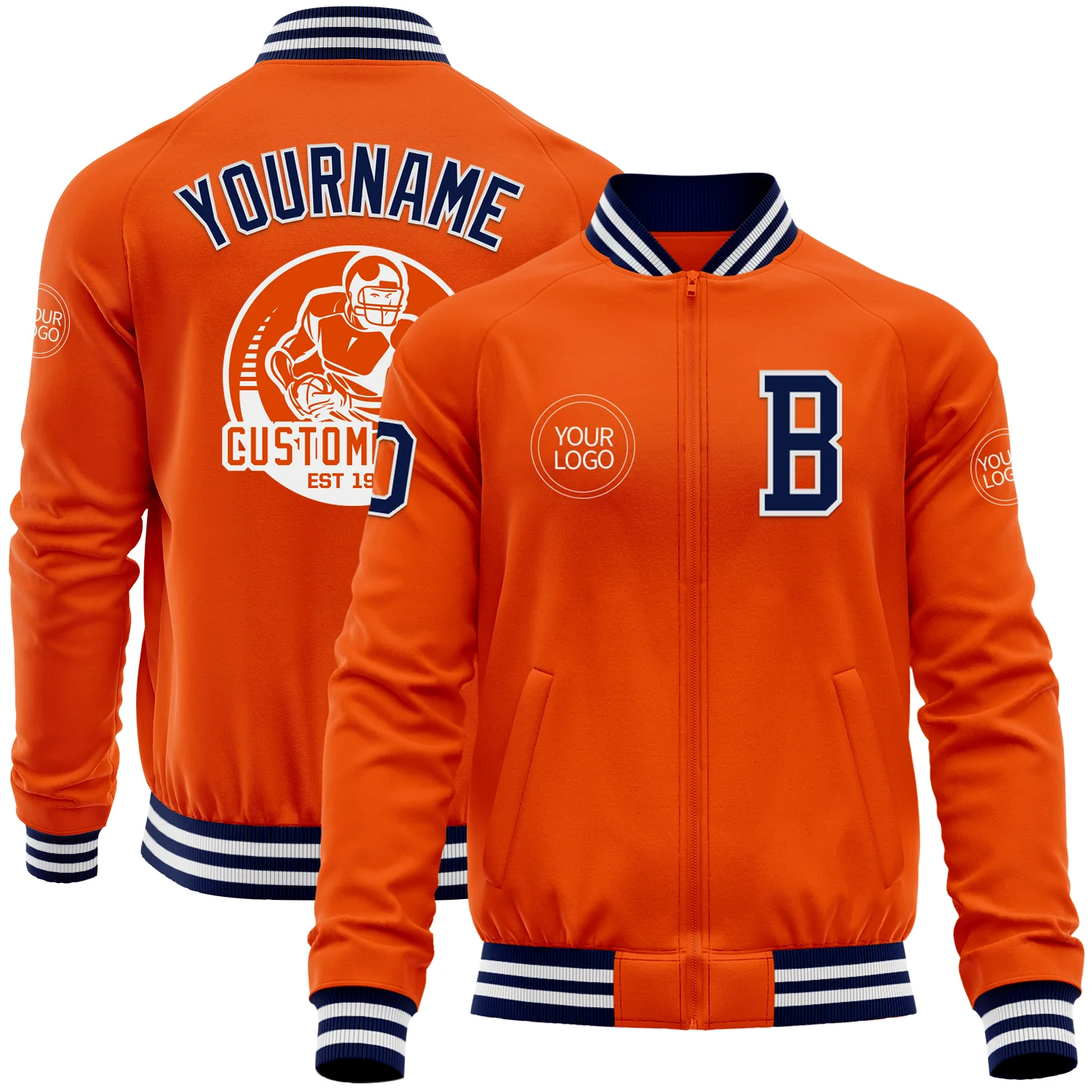 Custom Orange Navy Bomber Varsity Letterman Zipper Jacket