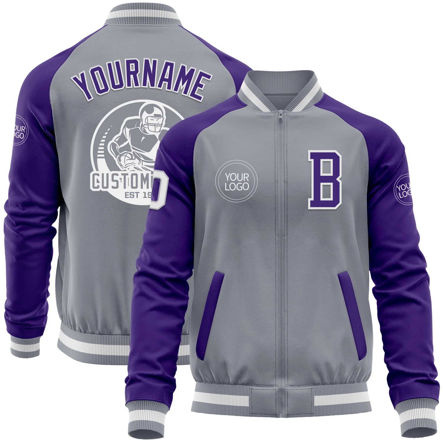 Custom Gray White-Purple Varsity Letterman Two Tone Zipper Jacket