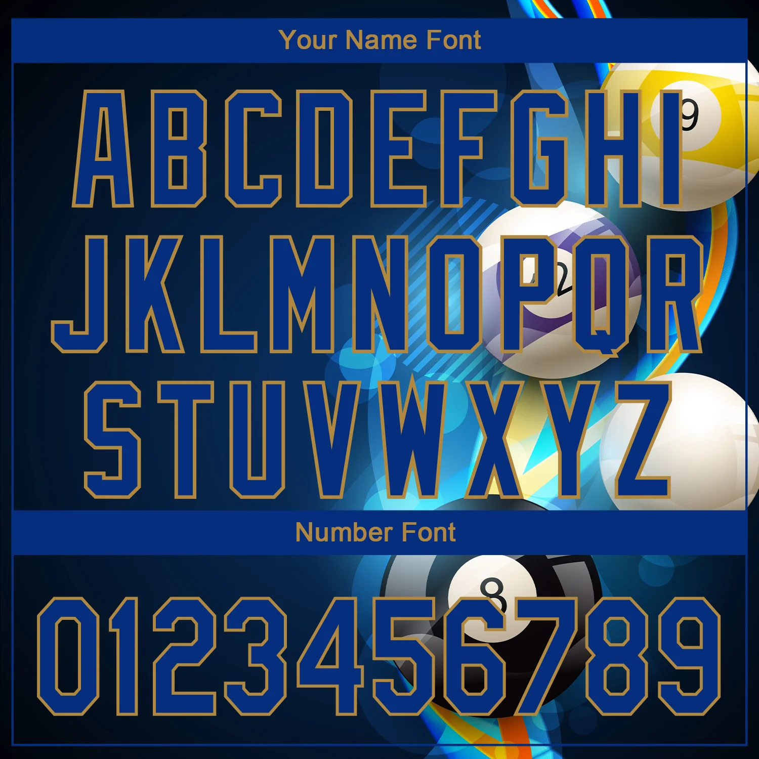 Custom Navy Royal-Old Gold 3D Pattern Design Billiards Performance Polo Shirt