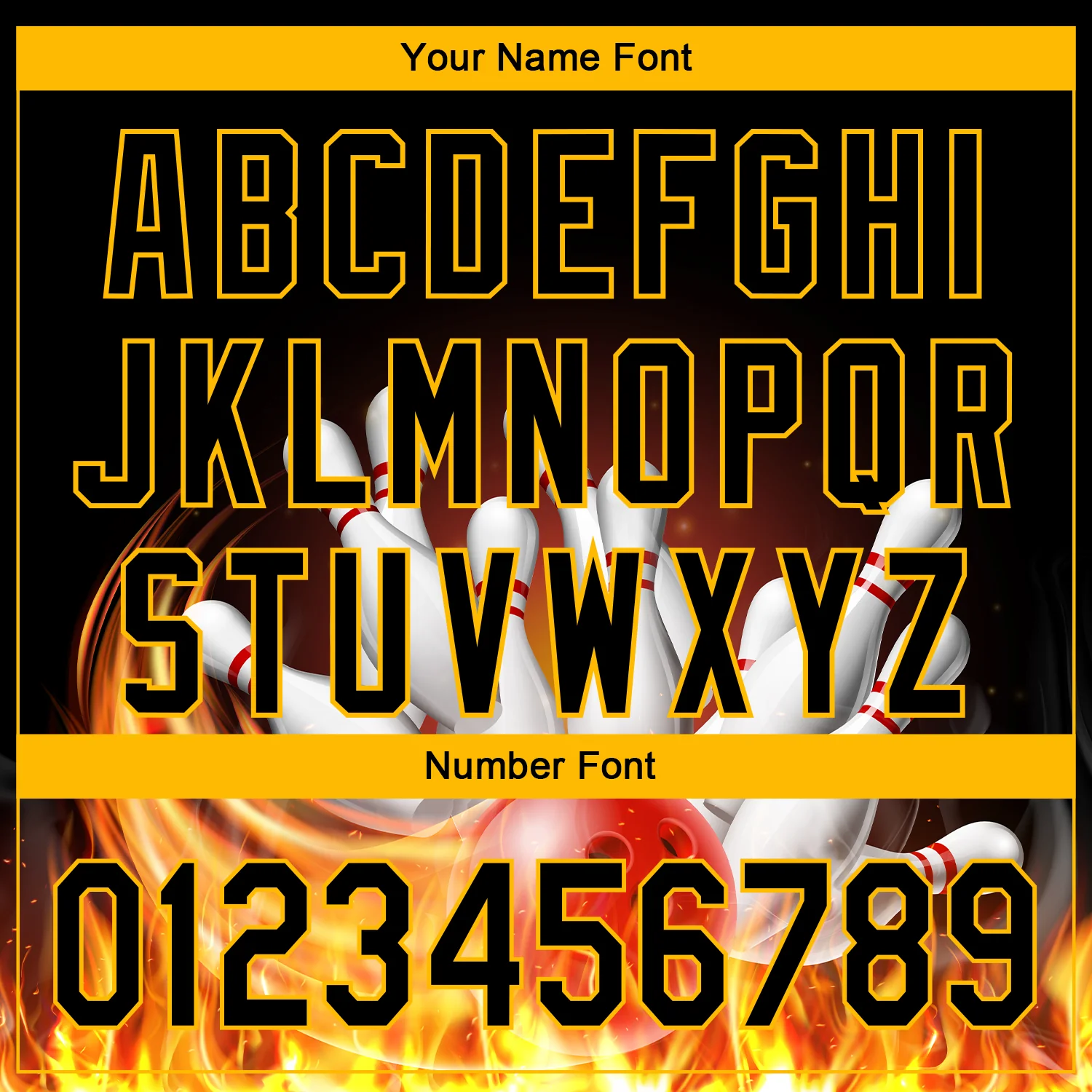 Custom Black Gold 3D Pattern Design Flame Bowling Performance Polo Shirt