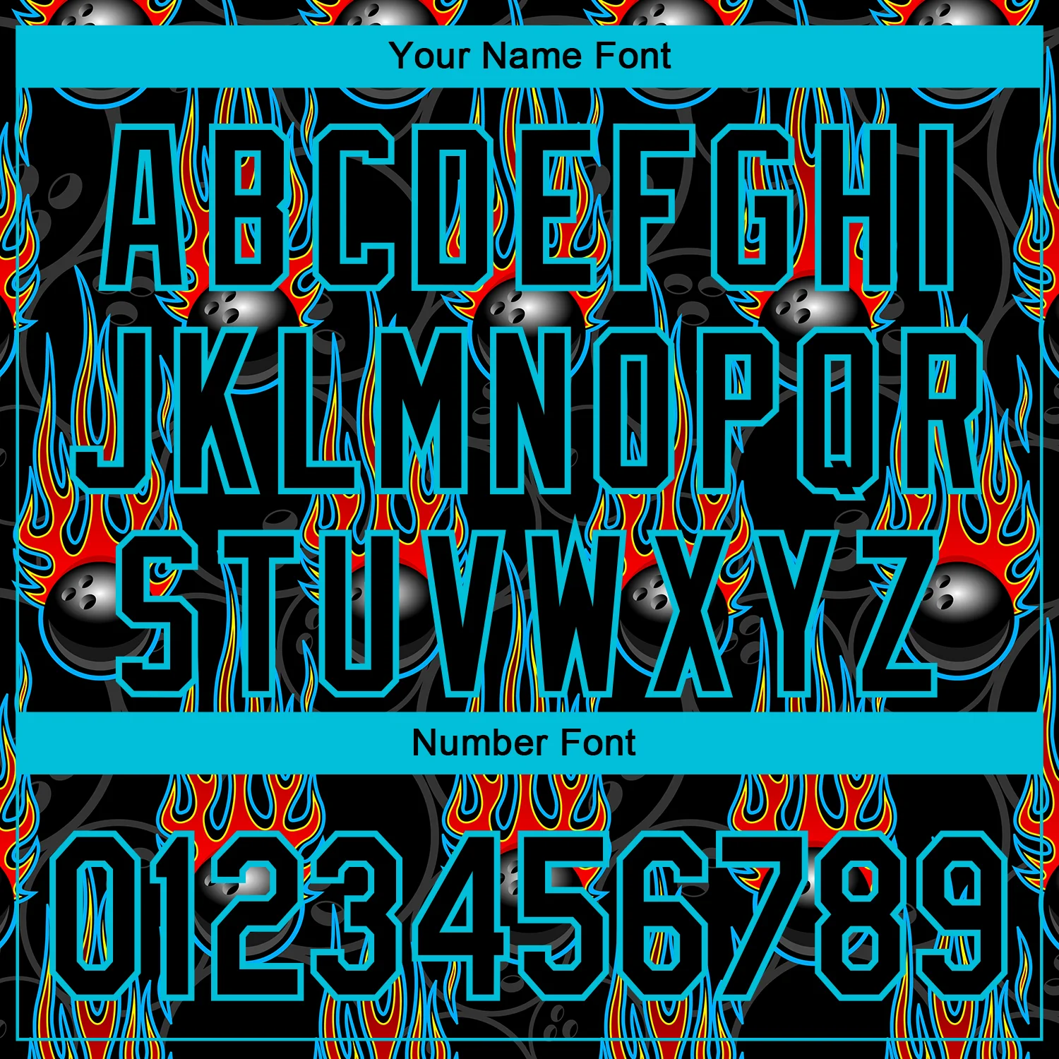 Custom Black Lakes Blue 3D Pattern Design Bowling Ball With Hotrod Flame Performance Polo Shirt