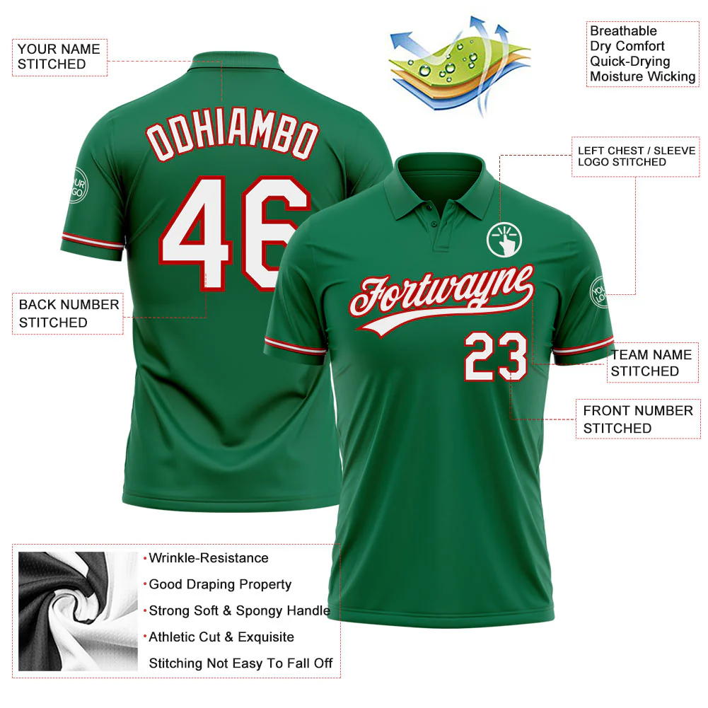Custom Kelly Green White-Red Performance Vapor Golf Polo Shirt