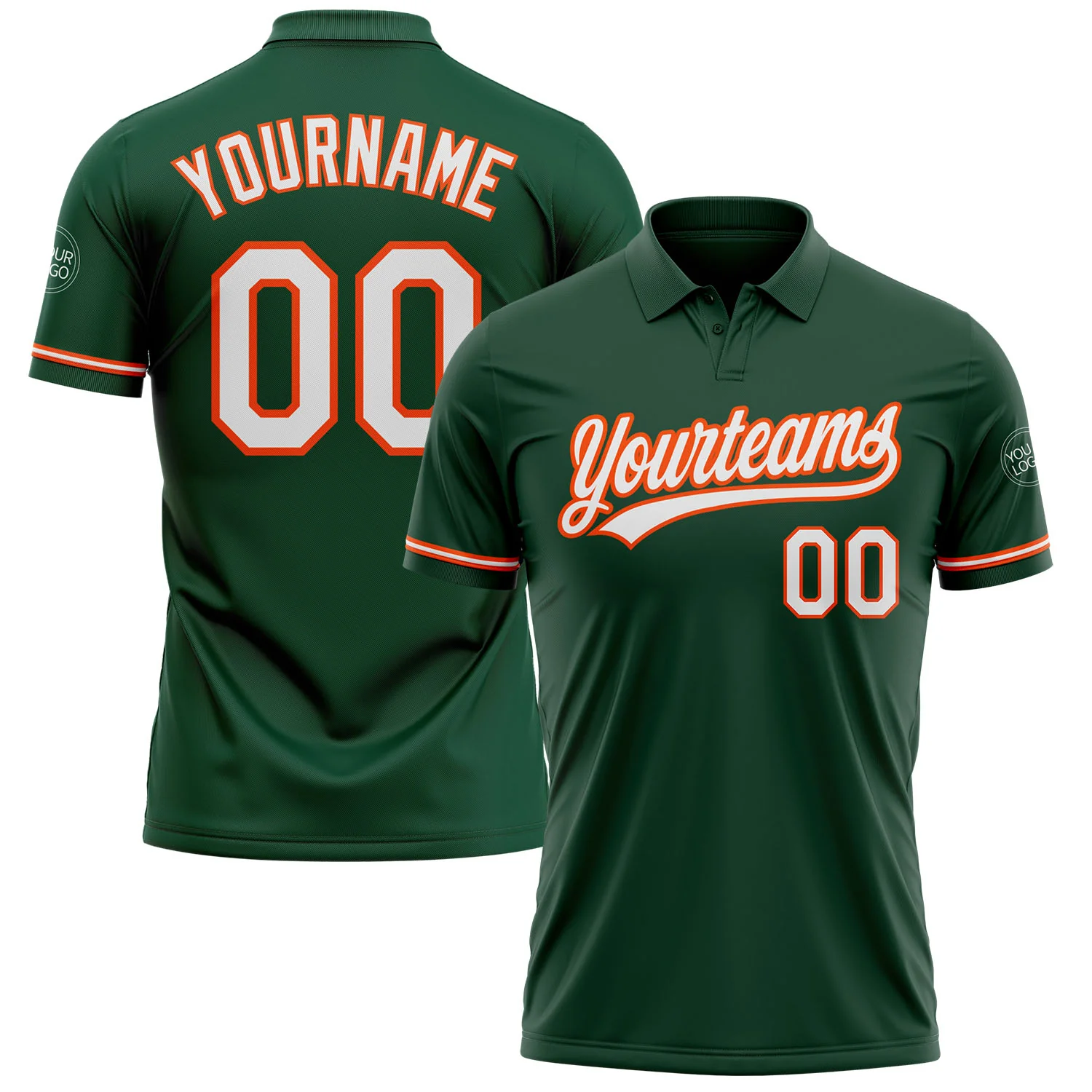 Custom Green White-Orange Performance Vapor Golf Polo Shirt