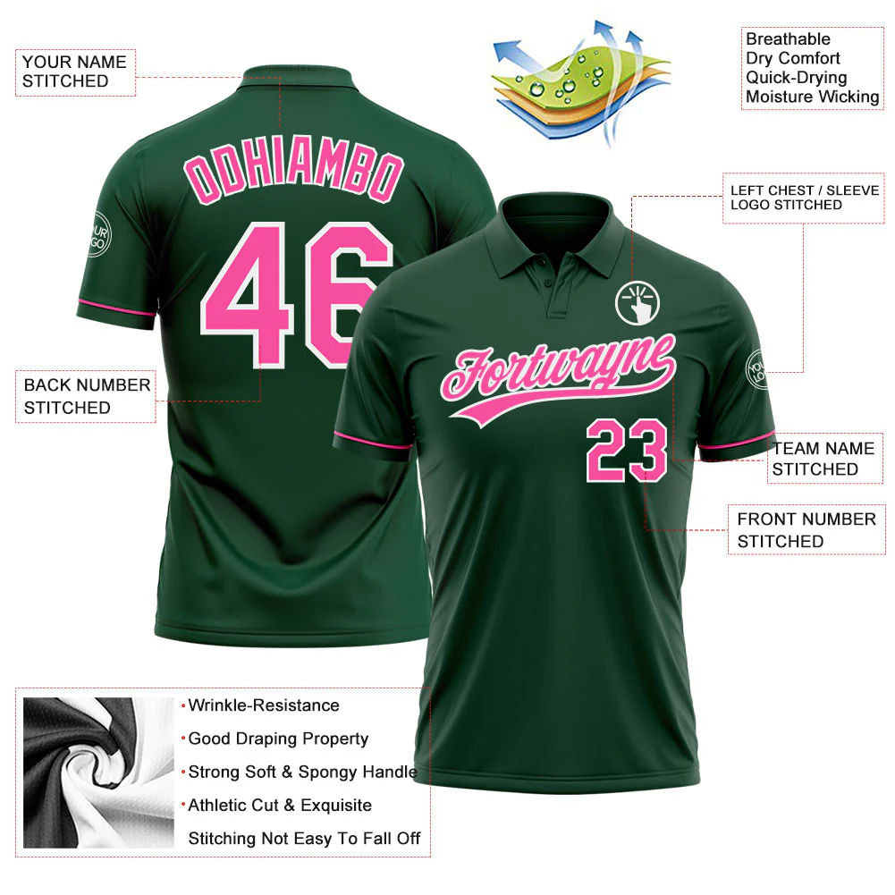 Custom Green Pink-White Performance Vapor Golf Polo Shirt