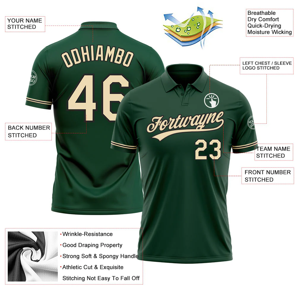 Custom Green City Cream-Black Performance Vapor Golf Polo Shirt