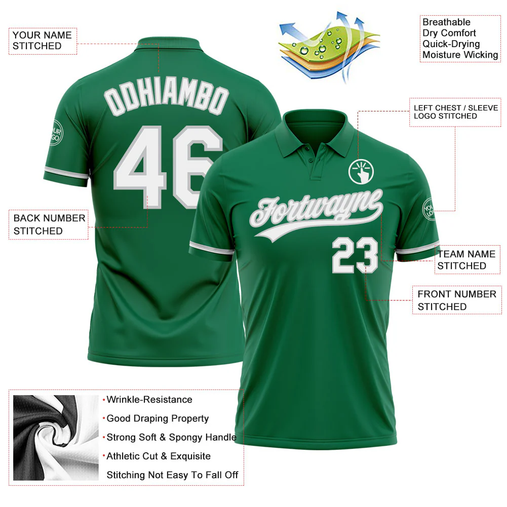 Custom Kelly Green White-Gray Performance Vapor Golf Polo Shirt
