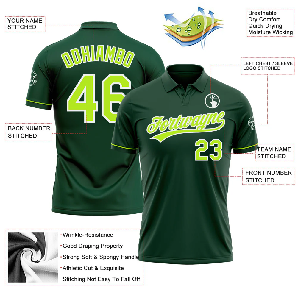 Custom Green Neon Green-White Performance Vapor Golf Polo Shirt