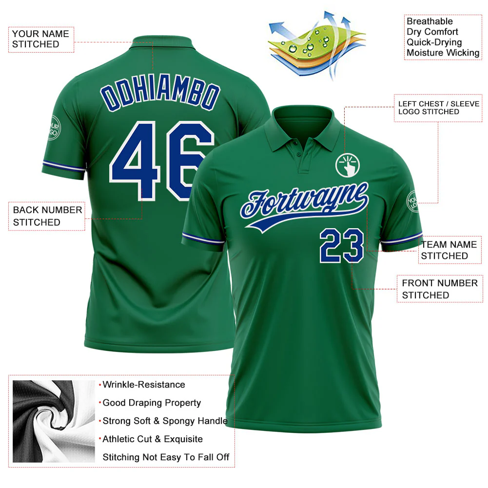 Custom Kelly Green Royal-White Performance Vapor Golf Polo Shirt