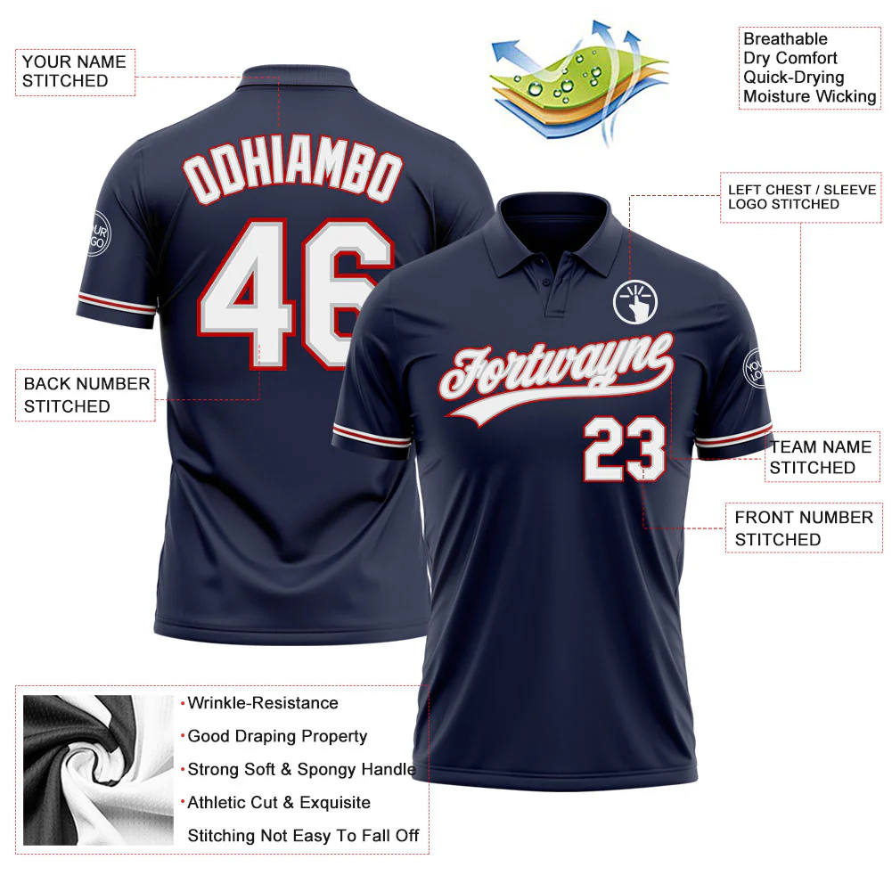 Custom Navy White Gray-Red Performance Vapor Golf Polo Shirt