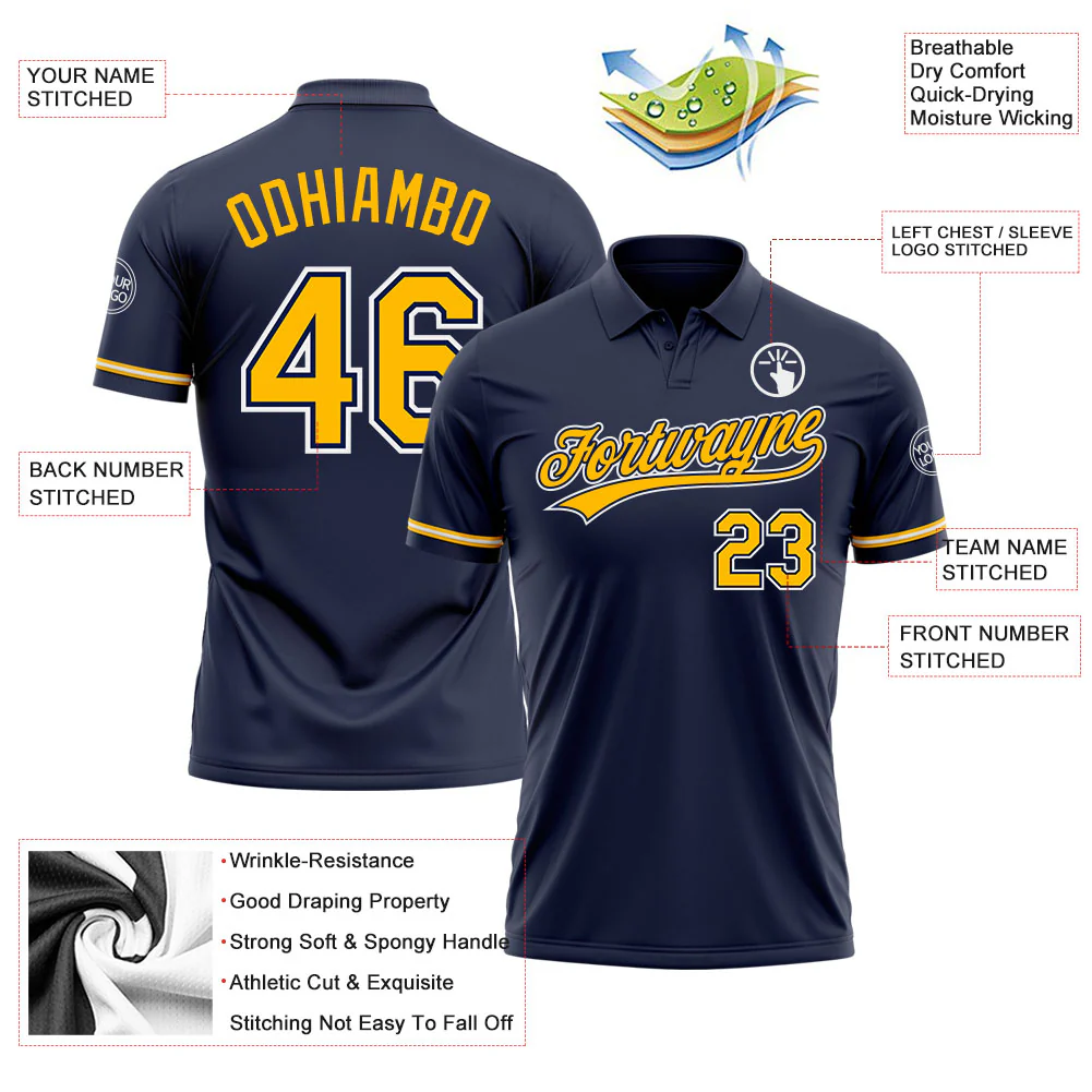 Custom Navy Gold-White Performance Vapor Golf Polo Shirt