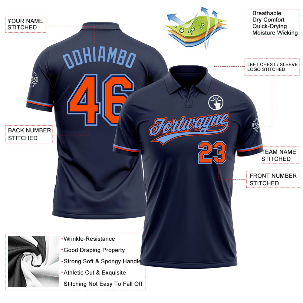 Custom Navy Orange-Powder Blue Performance Vapor Golf Polo Shirt