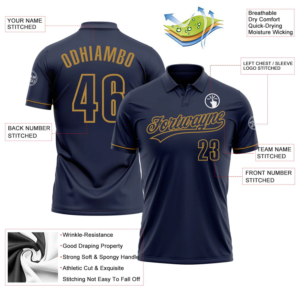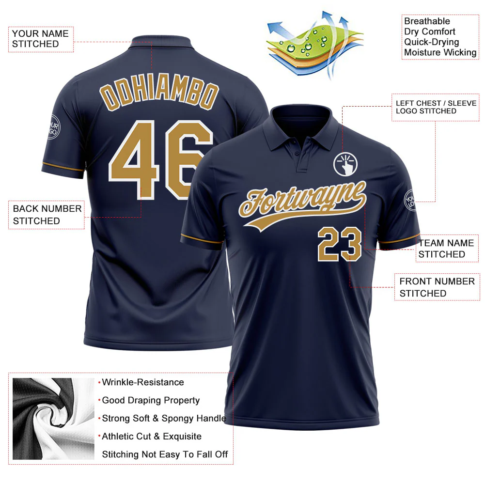 Custom Navy Old Gold-White Performance Vapor Golf Polo Shirt