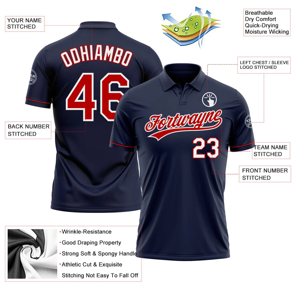 Custom Navy Red-White Performance Vapor Golf Polo Shirt