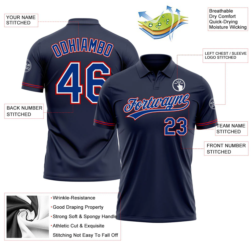 Custom Navy Royal-Red Performance Vapor Golf Polo Shirt