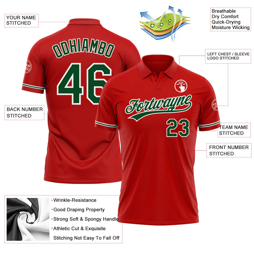 Custom Red Green-White Performance Vapor Golf Polo Shirt