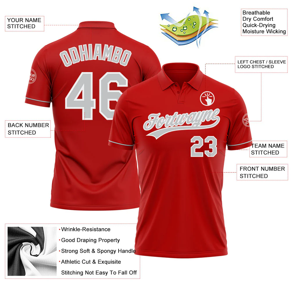 Custom Red Steel Gray-White Performance Vapor Golf Polo Shirt