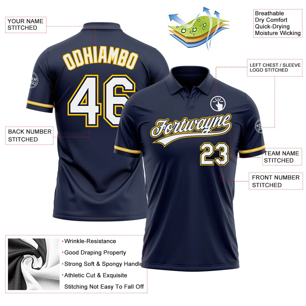 Custom Navy White-Yellow Performance Vapor Golf Polo Shirt