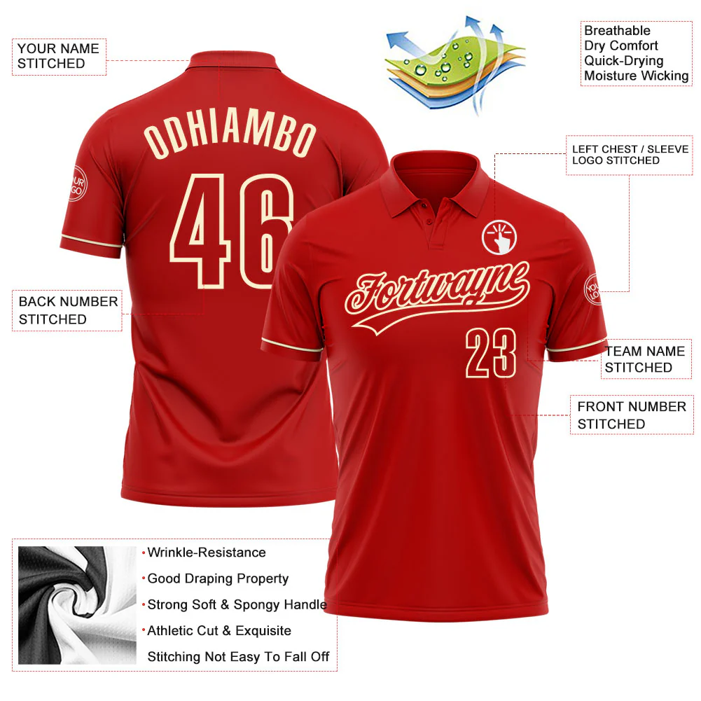 Custom Red Red-Cream Performance Vapor Golf Polo Shirt