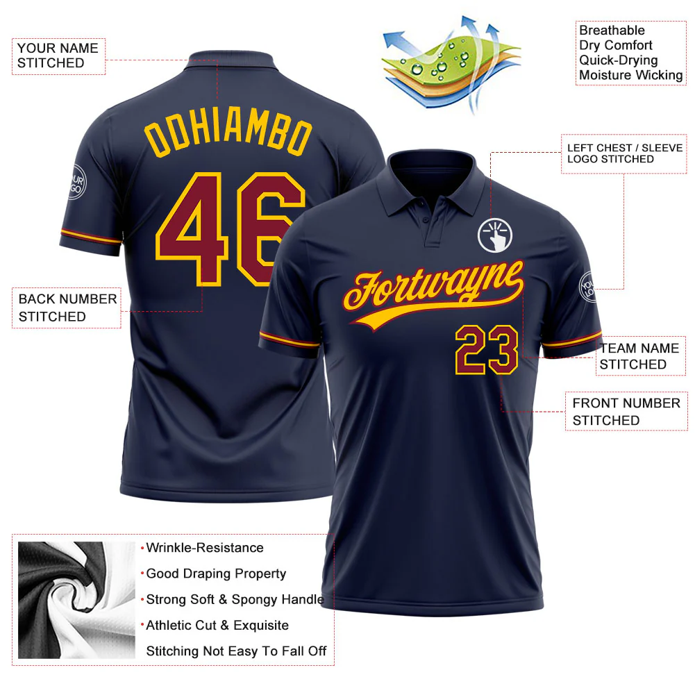 Custom Navy Cimson-Yellow Performance Vapor Golf Polo Shirt