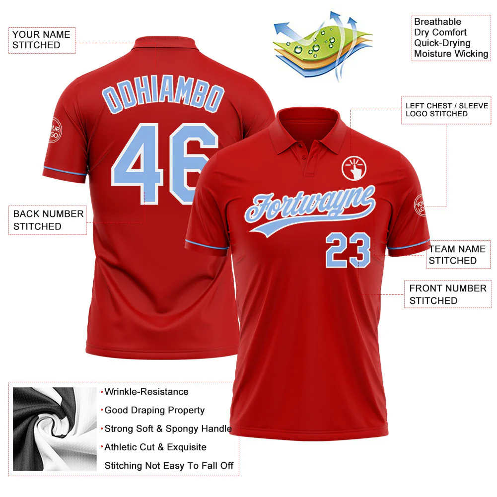Custom Red Light Blue-White Performance Vapor Golf Polo Shirt