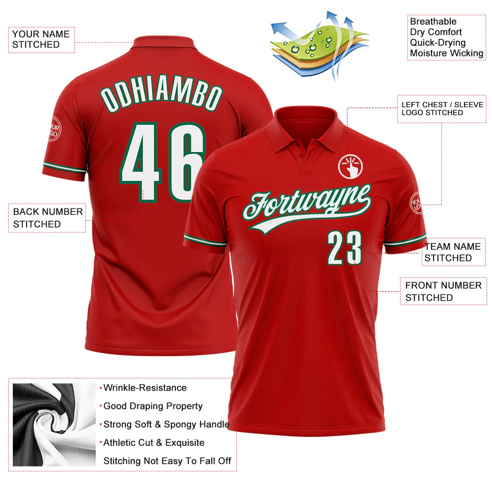 Custom Red White-Kelly Green Performance Vapor Golf Polo Shirt